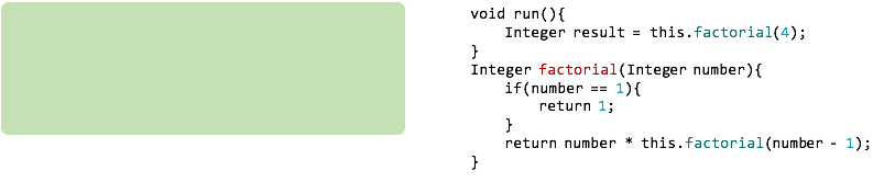 また,動作を確認するために,上記プログラムのfactorial メソッドの先頭にSystem.out.printf("factorial(%d)%n", number); という一文を入れて実行してみても良いでしょう.