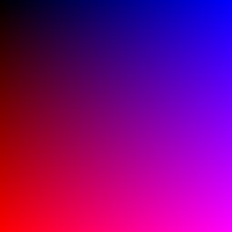 実行例に示す画像のような255×255の画像を作成してください. 画像ファイル名は gradiation2.png とし,クラス名は Gradiation2 としてください.